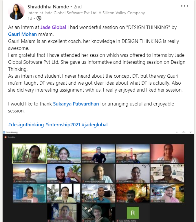 How Interns and Jade Global team felt check out on linkedin