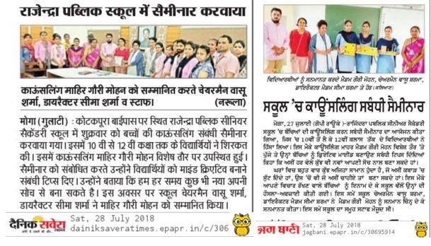 Conducted workshops for staff and students of Rajendra Public School