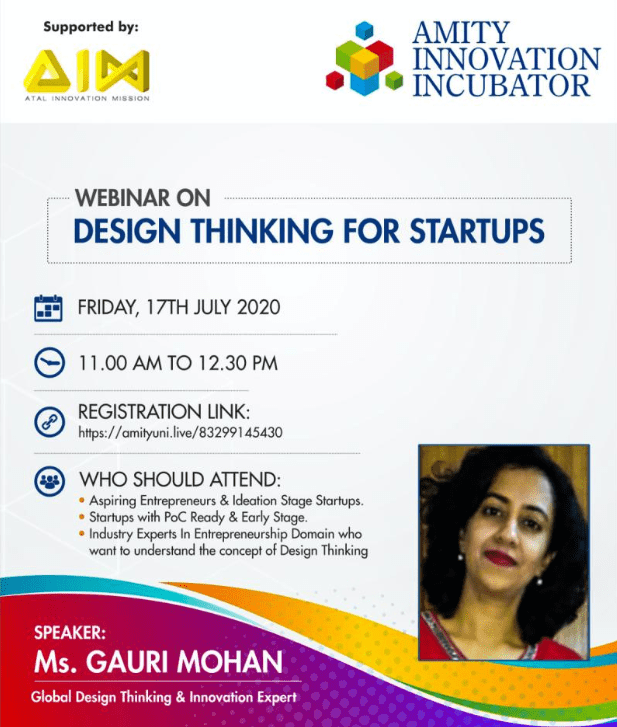 Design Thinking for Startups @Amity Innovation Incubator Live consultation on their startup queries Designing your product Why Design Thinking? as shared by participants To learn more watch the full video here Share this: Click to share on LinkedIn (Opens in new window) LinkedIn Click to share on Facebook (Opens in new window) Facebook Click to share on X (Opens in new window) X Click to share on WhatsApp (Opens in new window) WhatsApp Like Loading...