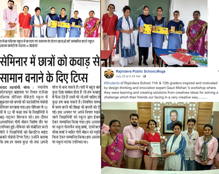“11th and 12th Students of Rajindera Public School were inspired and motivated by Design Thinking and innovation expert Gauri Mohan ‘s workshop where they were learning and creating solutions from creatives ideas for solving a challenge which their friends our facing in a very creative way”, Meenakshi, Chemistry Teacher.