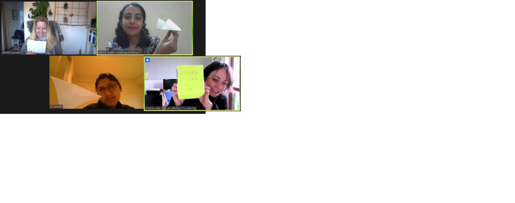 we can prototype anything be it conversation or a product or a service or an experience and the better is with the prop.Rachel practicing prototyping in 3 minutes with a prop. for “How might we improve commuter experience for urban cyclists in china?” and showcasing the same in a Virtual Session. Great Job Rachel !!! 🙂