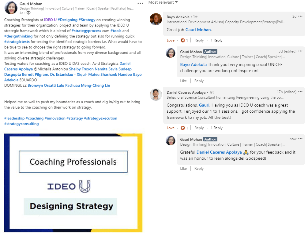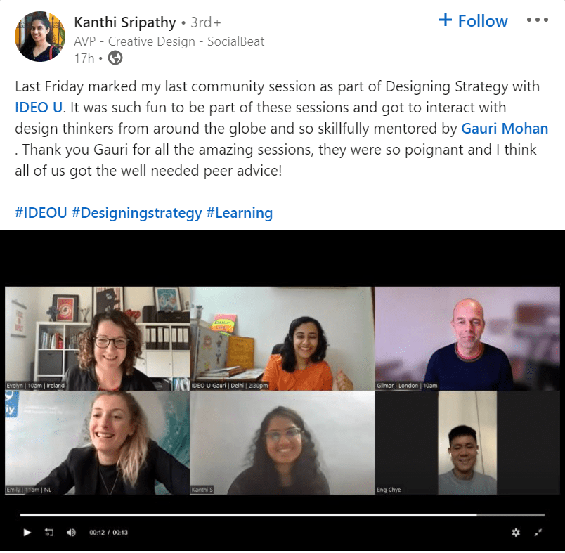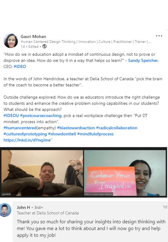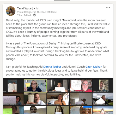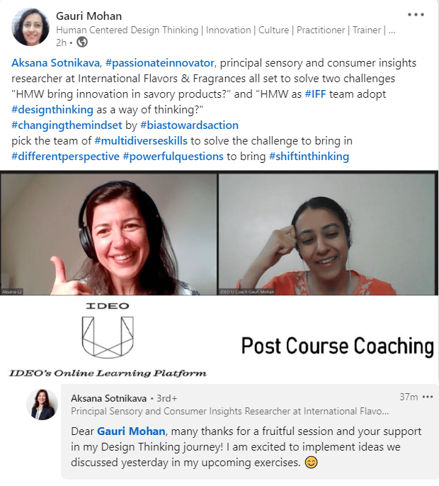 Teaching and Coaching at IDEO U globally virtually since 2018 – till date